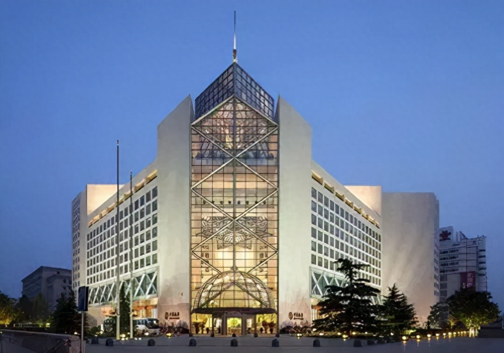 这就使中银总行大厦与这些重要的建筑物以及古城的整体氛围融合方面出现了一个问题。我从城市规划课上得知:北京这个城市,从50年代开始,几次制定的城市总体规划都是单纯以旧城为中心、城市建设以改造旧城为主导方向,这使得北京旧城内古老的胡同、四合院被高楼大厦取代。事实上,贝聿铭当年为了街景的统一、街区的建筑和谐,极力反对在长安街盖高楼,并得到国务院领导的支持。北京大学采纳了这个看法,并于清华大学和规划委员会一起制定了长安街的高度限制。根据规定,中银总行大厦这个位置计算出来的建筑高度应该是45米。然而这个高度却成了中银总行大厦的束缚。由于这将是高密度的商业大楼,因此出现了容积率高但高度不能高的问题。在与环境结合这方面,很多建筑方案都采用了中国传统建筑风格,导致周围许多建筑多了一个中国式屋顶。中银总行大厦的屋顶设计,贝聿铭运用了他的常用手法,三角与菱形为主,圆形方形为辅的玻璃幕墙。简单的几何语言没有任何民族界限,易懂且能够融合进去。