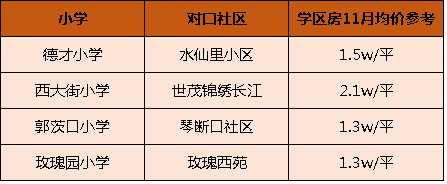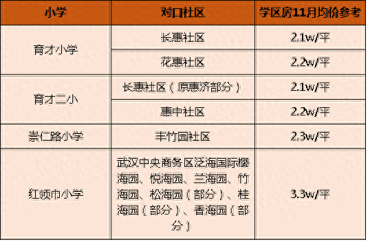 汉口重点中小学附近部分在售二手房小区房价(仅供参考,以实际为准)