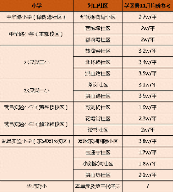 武昌重点中小学附近部分在售二手房小区房价(仅供参考,以实际为准)