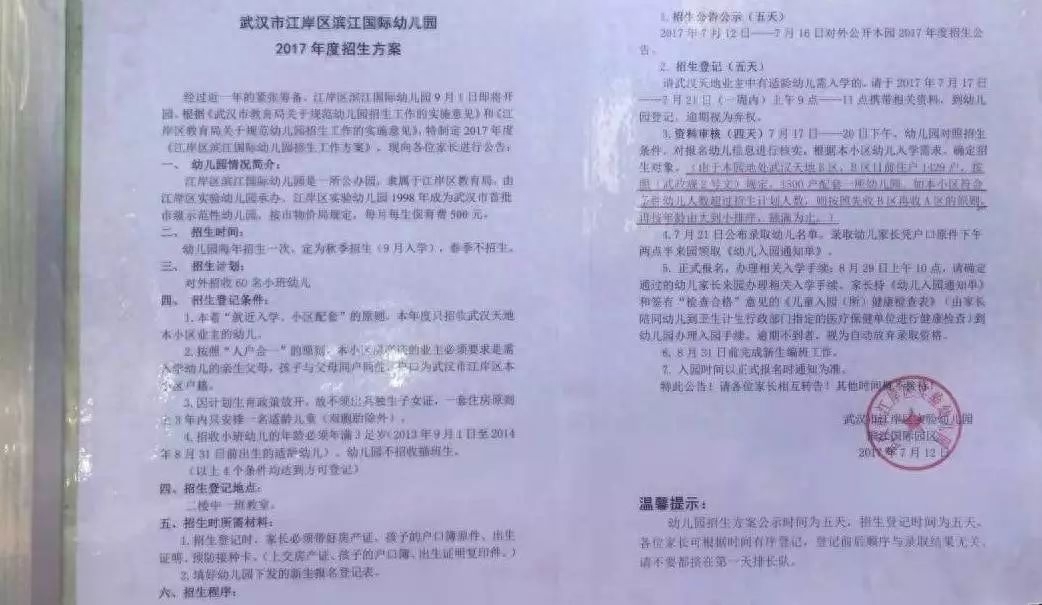 总体而言,目前武汉实行对口招生,关于心仪的重点中小学,家长们心中大概都有一杆秤。值得注意的是,东湖新技术开发区(光谷)首次出台一套房产六年只提供一个学位,汉南亦如此。考虑到往年,武汉市其他城区对学区房产提供入学学位进行了时间限制(5年),所以在入手前务必要做好功课,如在房产所在教育局官网查询等。