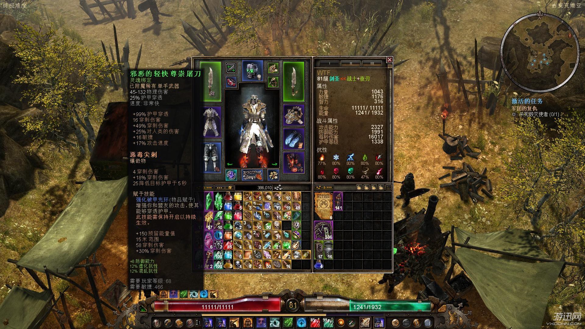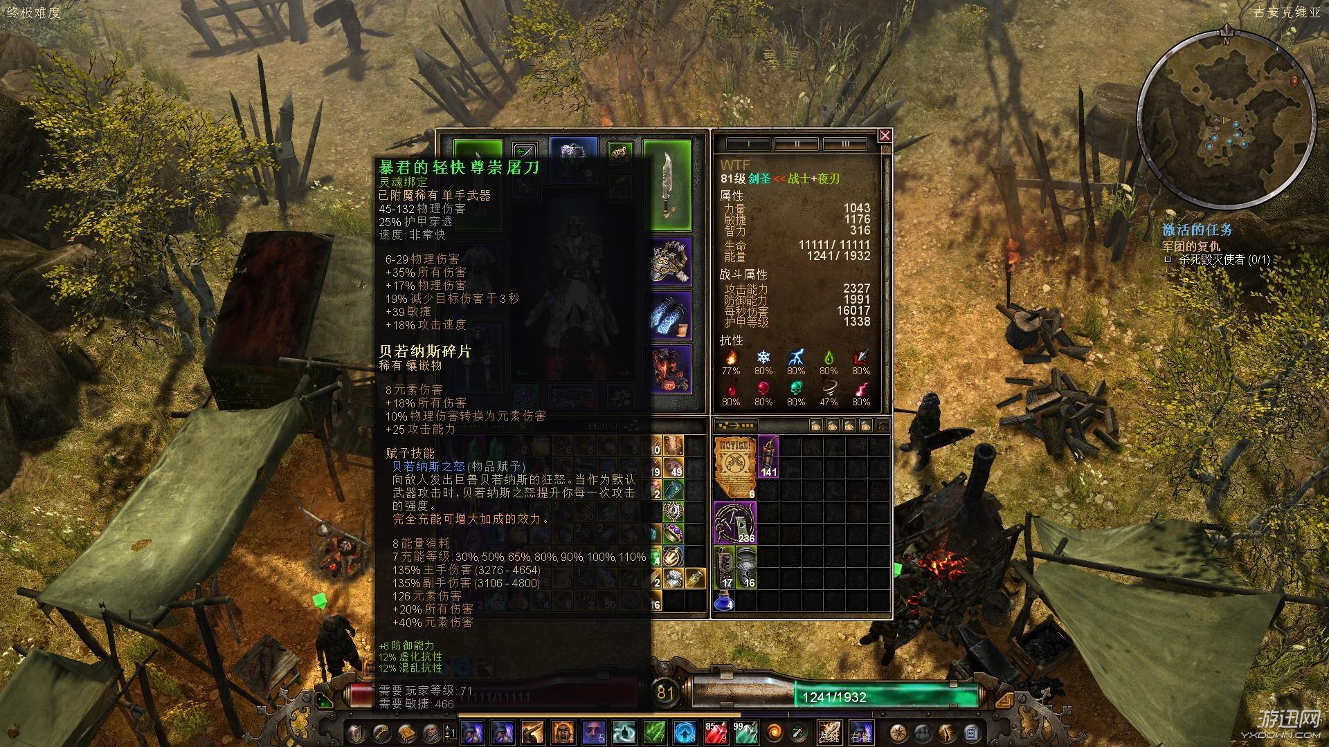 没怎样刷装备,不过运气不错,商店出了两把刀,主要是要有轻快词缀的DPS提升极大,然后暴君的减目标伤害(主要打复仇BOSS),就差不多了,因为我遗物带诅咒,所以瘟疫词缀的武器就没必要了,如果你没诅咒,就一定要拿瘟疫词缀减抗,不然终极难度吸不了血,终极难度怪的吸血抗挺高的~