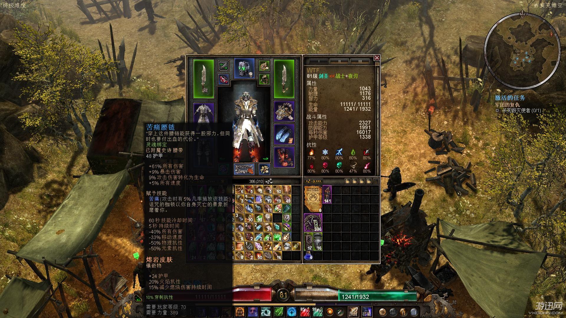 70-85,终于要开始终极难度了,终极难度的怪提升很大,特别是血量和吸血抗性和穿刺,所以减全抗装备一定要有,例如瘟疫词缀的武器,诅咒遗物,这样才可以有效吸血,终极难度第3章后的怪攻击是很高的,像我的面板全抗满,1.W血,1300护甲,1.7万DPS,12%吸血,50点降全抗,也很多时不能站撸,特别是怪放DOT的时候,多层DOT可以叠加,掉血非常快,当然我的还不是神装,如果把吸血和DPS提高一倍,说不定可以站撸绝大部分了。剑圣后期就是在满抗基础上提高DPS和吸血,达到无敌的境界吧。