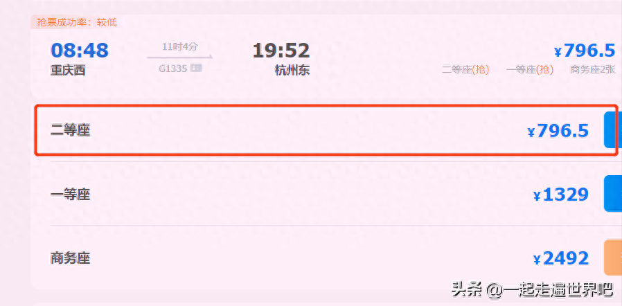 不过,前不久,我发现,在重庆与杭州之间,有一趟普通火车,其速度并不慢,而且,相较于高铁而言,票价很便宜!