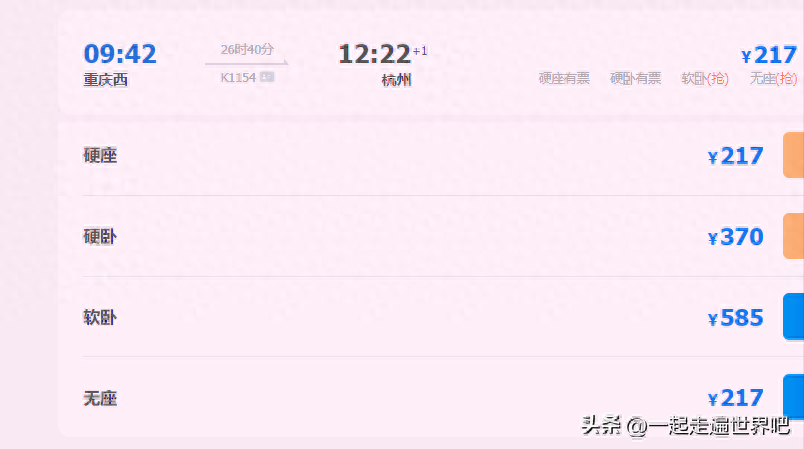 请看上图,上图为K1154次旅客列车的票价信息,其中,全程硬座是217元,硬卧也只需要370元。