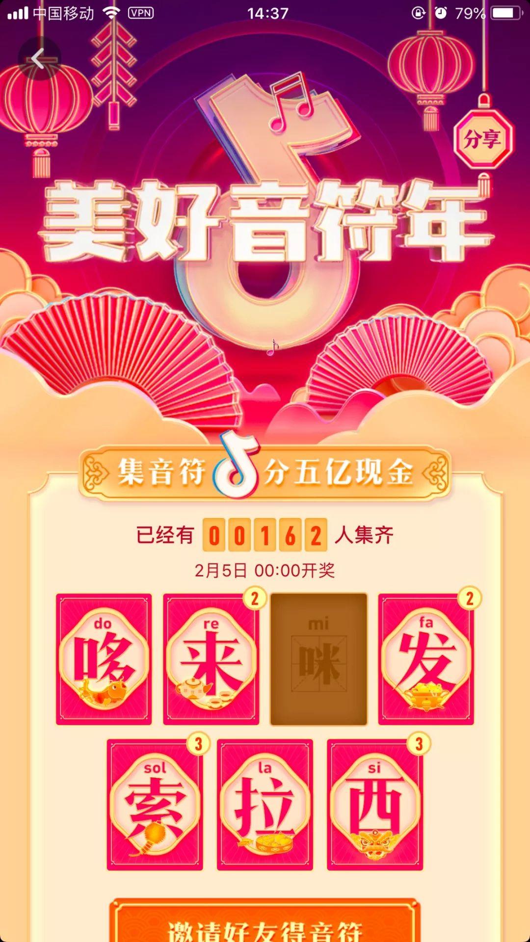 抖音每一次美好生活的展现,都伴随着一首独特的音乐记录,“音符”可以说是抖音用来表达并传递美好的专属介质。而当象征美好的“音”,遇到新春的“福”,又将碰撞出怎样的火花?1月28日至2月4日“抖音美好音符年”活动期间,用户通过抖音专属活动页参与活动,将随机获得“美好音符”,集齐“哆来咪发索拉西”七种音符,即可在除夕当晚参与平分抖音5亿元新春现金红包大礼。