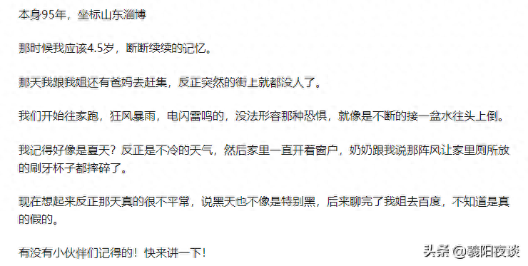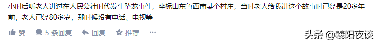 在我再次去寻找山东发生的坠龙事件时,有一篇帖子侧面印证了黑山子村坠龙的真实性。