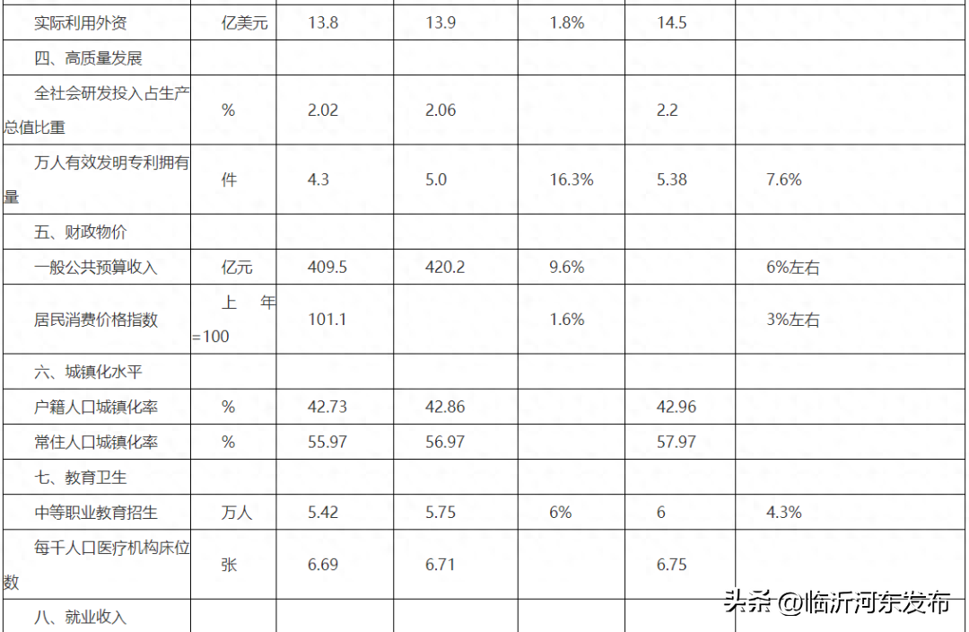 (一)更加突出新旧动能转换,凝聚高质量跨越发展的强劲势能。锚定工业“量质齐升、两年万亿”,坚持把招商引资作为跨越发展的核心动能,做优做强传统产业,大力突破战新产业,紧抓创新关键变量,加快推动工业经济质的有效提升和量的合理增长,奋力构建“百亿企业、千亿产业、万亿工业”现代产业体系。更大力度推进招商引资。树牢“谁英雄谁好汉、招商引资项目见”的鲜明导向,聚焦“实、好、多、快”,实行全年招商、全员招商,推动招商引资由初级阶段向中级阶段转变。开展“招商引资服务年”活动,制定出台考核办法,每月晾晒排名、每季专题调度、每半年评选十佳项目。运用“会展+招商”等方式,举办央企推介会等活动,力争新引进500强、央企投资项目30个以上,过10亿元项目60个以上,新签约项目总投资超过4800亿元。招引新增总部企业(机构)突破40家,推动总部经济集聚增势,打造“京沪走廊高端商务总部生态圈”。更强决心突破战新产业。集聚资源、政策、要素,加速布局新经济,加紧抢占新赛道,着力做强现代生物、高端装备制造、新材料、节能环保四大支柱产业,紧盯新能源、新能源汽车发展方向,聚力突破动力电池、高效光伏、氢能、储能,力争新签约战新产业项目占比25%以上,战新产业产值占比提高2个百分点。充分发挥资源、市场、产业等优势,大力招引动力电池、新能源汽车制造、高效光伏装备制造、氢能装备制造、储能电池、绿氢制备等领域头部企业,产业链两端协同发力,培育壮大一批“雁阵形”产业集群和行业领军企业,建设新能源汽车制造、智能光伏装备制造和氢能装备制造基地,推动新能源产业率先崛起、蓬勃发展,打造“绿色低碳之城”。更实举措推动产业升级。实施先行区建设三年行动计划和2023年重点工作任务,推动绿色低碳高质量发展,出台碳达峰工作方案,制定碳达峰碳中和工作要点,打造先行区建设“临沂样板”。充分发挥市级领导“链长”统筹指导作用,持续加大精准跟踪服务力度,夯实八大传统产业“压舱石”,狠抓标志性产业链建设,壮大食品、冶金、木业3个千亿级产业和机械、化工、建材3个五百亿级产业,培育“链主”型企业20家,产值过100亿元、过50亿元、过亿元企业分别达到10家、15家、1200家,力争八大传统产业产值增长10%以上。加强上市后备企业“梯队”建设,力争新增上市公司或“新三板”挂牌企业3家以上。实施“千企千项”技改工程,组织实施1000个以上工业技改项目,确定100个市级重点技改项目,技改投资增长12%。谋划推进临港精钢基地二期,打造“全国高端不锈钢全产业链绿色低碳发展示范区”。推进“四减四增”三年行动,严格落实节能审查和能耗替代制度,加快推动“两高”行业能效提升,用足用好省级能耗指标收储交易制度,全力保障重点项目用能用煤需求。更高标准强化创新驱动。坚持以教育、科技、人才创新引领全方位创新,聚力打造科创高地,力争全社会研发投入增长10%、超过120亿元。大力实施科技型中小企业创新能力提升工程,新增国家高新技术企业200家以上、国家科技型中小企业200家以上、省级以上“专精特新”企业150家、“瞪羚”企业30家、“单项冠军”企业20家。高起点打造山东省大学科技园,推动科创走廊建设,全力突破高新区。加快上海技术交易所鲁南科创服务中心建设,新增全国重点实验室1家、国家级科技孵化载体1家,新建各类科创平台100家以上,加快构建以沂蒙山实验室为引领的“1213”实验室体系。抓好“1+N”人才新政落实,推广“揭榜制”“赛马制”,柔性引进一批科技创新创业领军人才。全面落实临沂“职教十条”,加快青岛理工大学、临沂职业学院和临沂技师学院新校区、鲁南技师学院二期、临沂大学医学院建设,推动临沂科技职业学院通过省教育厅设学验收,做好临沂科技学院、临沂城市职业学院等新增高校筹建工作。力争省级高水平中职学校达到9所,新培育市级产教融合型企业20家以上,年度培养技术人才7万人、技能培训15万人次以上。更好成效加快数字转型。着力提升制造业数字化、智能化水平,培育壮大数字新业态、新模式。组织开展智能制造进企业活动,推动规上工业企业“上云用数赋智”,指导骨干企业创建“晨星工厂”。依托省级工业互联网平台,围绕机械、木业、冶金等特色产业集群,培育3—5个面向行业的特色型、专业型平台,形成以应用为纽带的推广模式。新建5G基站4000个,实现乡镇驻地以上区域和重点行政村5G信号连续覆盖。加快“城市大脑”和新型智慧城市建设,打造数字化、智能化解决方案和应用场景。