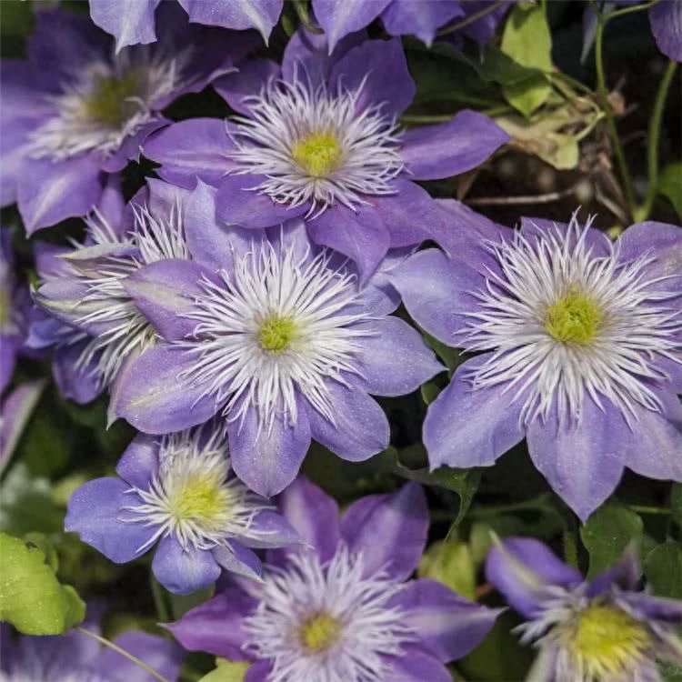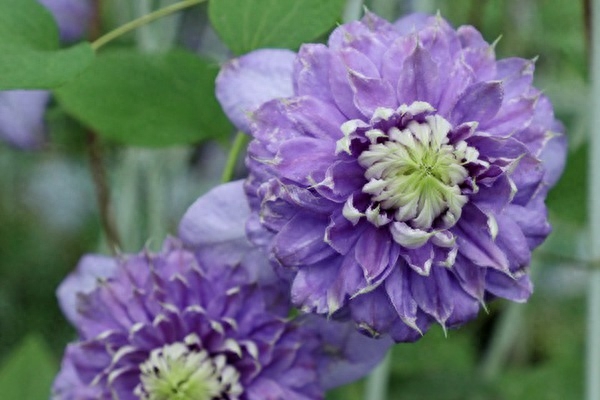 重瓣,蓝紫色、粉紫色花色,花瓣细长、花型圆润。新老枝条都可以开花(4-5月老枝条集中开花,8-10月新枝条集中开花)。