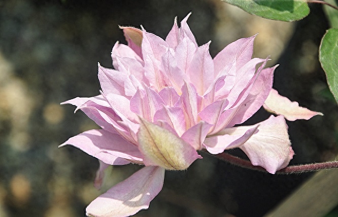 重瓣,未开时花苞呈淡淡的绿色,开放后是淡淡的蓝色、也有些偏紫,外面的花萼谢了以后整个花朵看起来就和喷泉一样。