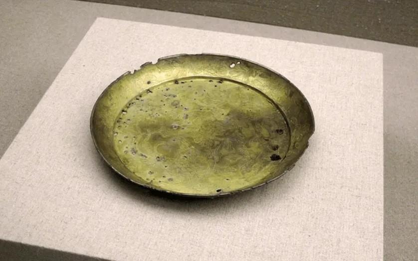 王恭妃棺椁中的陪葬品只有两件。一件破银壶、一件满是缺口的镀金银盘。