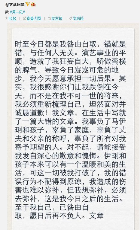 2014年3月31日凌晨,文章发布声明称自己咎由自取,