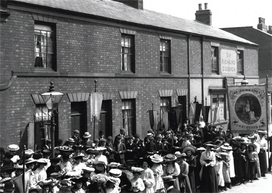▲ 在这张1908年拍摄的照片中,一场由车辆和游行者组成的禁酒游行在芝加哥街头展开