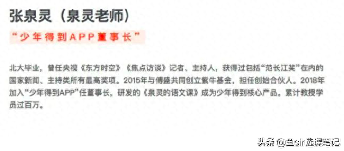 除了名师张泉灵为录播老师无法选择,我们来看看少年得到直播老师的水平如何。