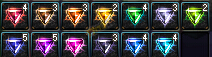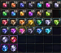 晶珠同样是分成蓝白紫粉,每一种颜色的晶珠属性分别是4种属强,物爆魔爆,命中回避,攻速移动,物防魔防,负重,总共13种,6大类,每一大类同时存在的数量只能有一个
