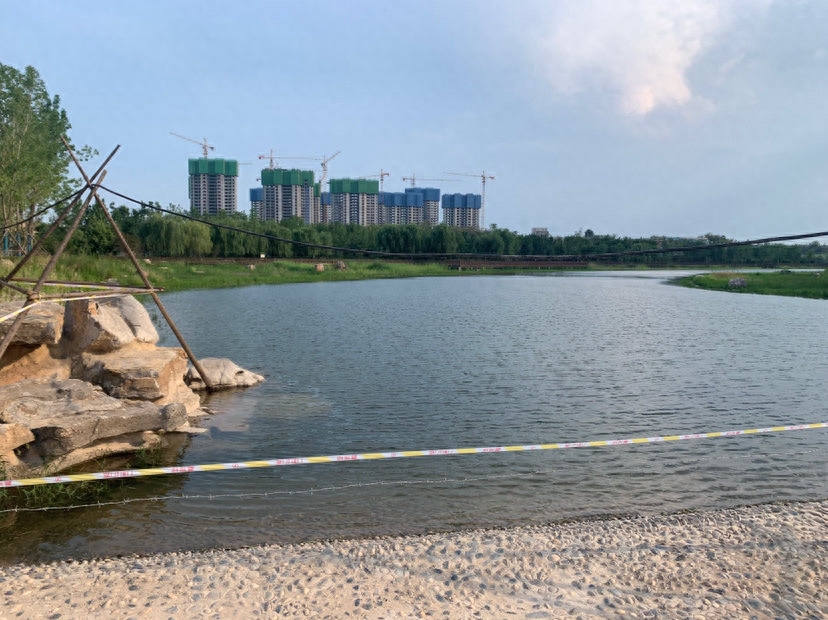 3、从环境上来说,金科有贾鲁河水系加持,相比之下要比万科的环境更丰富一些,金科中原周边的生态环境没得说,贾鲁河、南水北调、常庄水库在周围,水系丰富,注定了片区的密度不会太高,整体比较宜居,但还是有点荒,水系需要治理,如果能达到碧桂园西湖那一片西流湖的呈现效果就好了(如规划图所示,金科中原的内部,有贾鲁河支流穿过,万科航海未来城并没有水系穿过)。