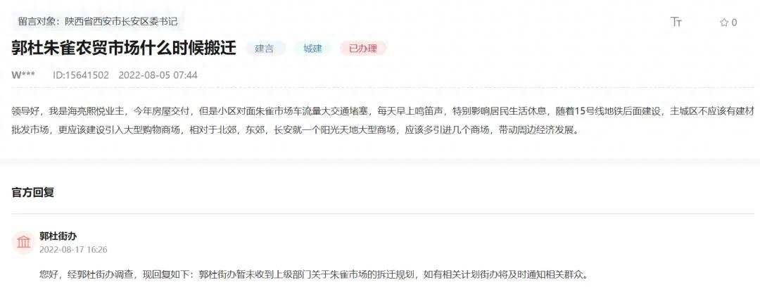 问:郭杜朱雀农贸市场有拆迁计划吗?