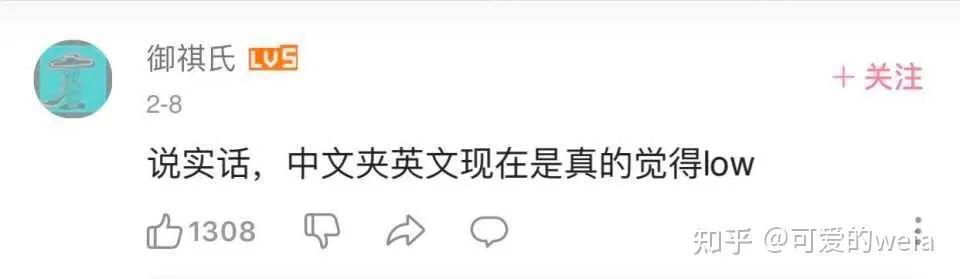 “中文夹英文现在是真的觉得 low ”