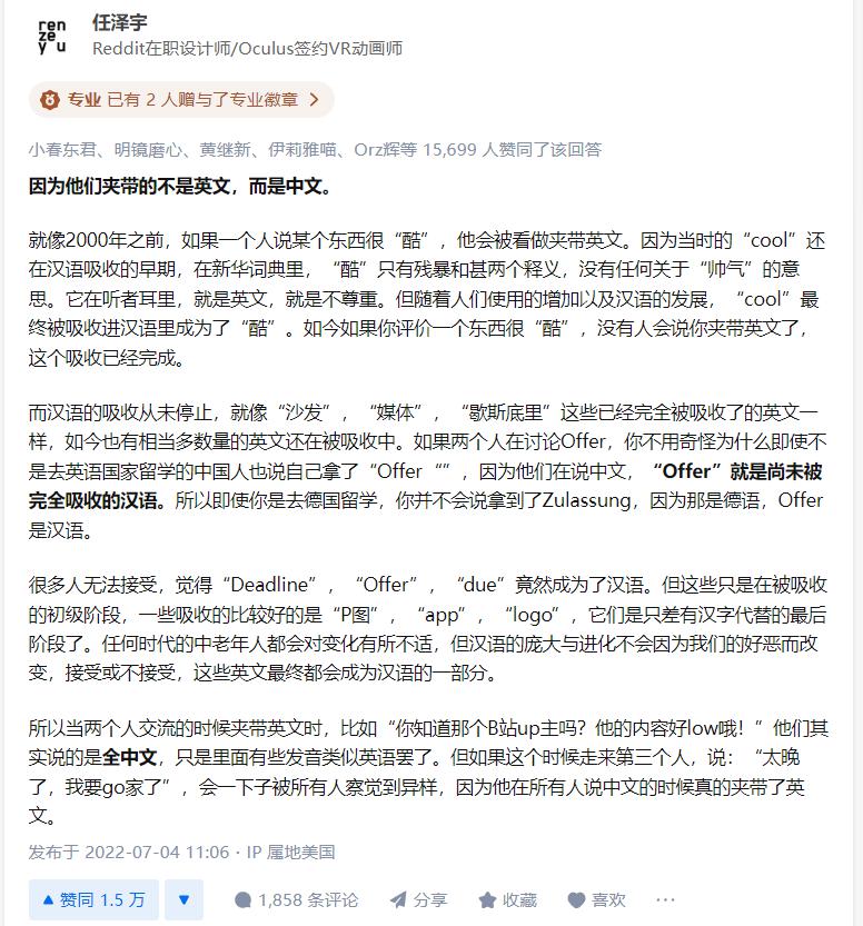 " 为什么有些人聊天时会中英文混用。"