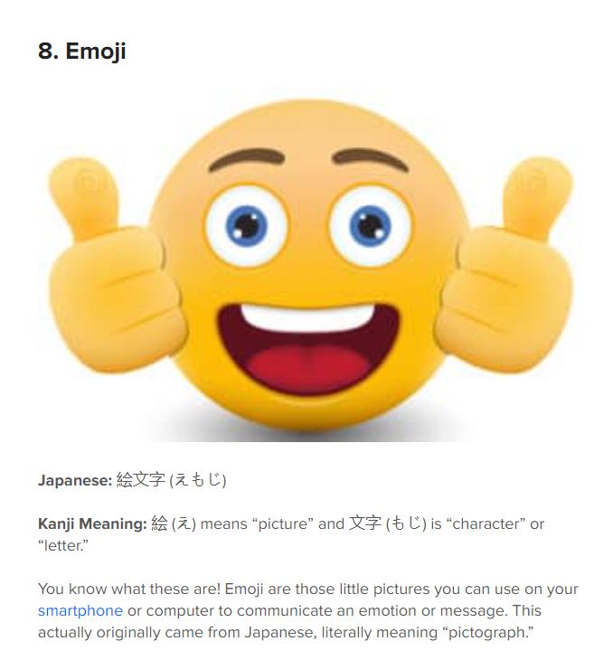 当然也不止从印欧语系吸收词汇,英语也会受日语的影响。除了 "Typhoon"、"sushi"、"tsunami"、"Origami" 以外,甚至 "EMOJI",其实也是日语 " 绘文字 " 的音译。