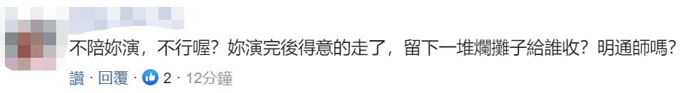 有网友问道:不陪你演,不行哦?你演完后得意地走了,留下一堆烂摊子给谁收?↓