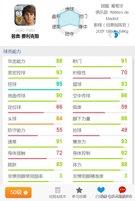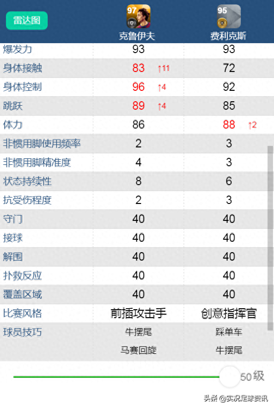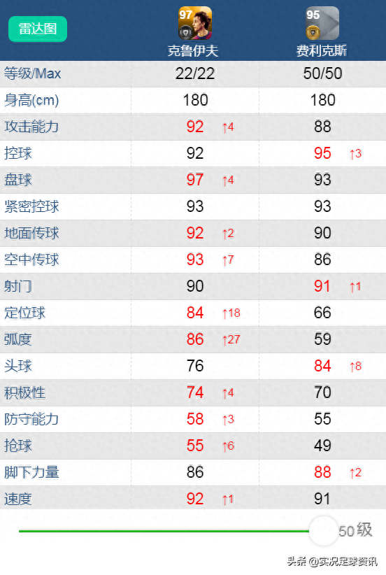 可以看到加强后的菲利克斯真的非常恐怖,克圣主要强在了定位球,弧度,防守和身体,菲利克斯的控球,头球居然更多,甚至射门也更强,除了风格没有前叉攻击手那么强势之外,菲利克斯确实是新赛季值得考虑的人选!