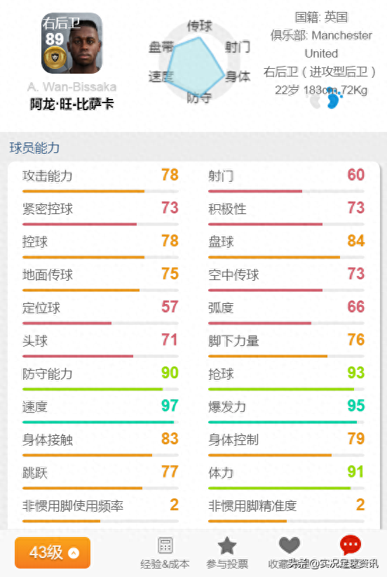 拥有90射门,90盘带,90控球,90地传,90速度和90身体控制的超级妖人!