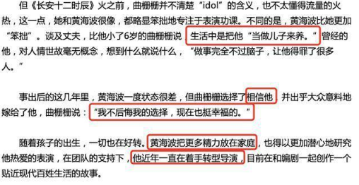 曲栅栅也曾为黄海波鸣不平。曲栅栅在一次采访中提到自己与黄海波的婚姻。