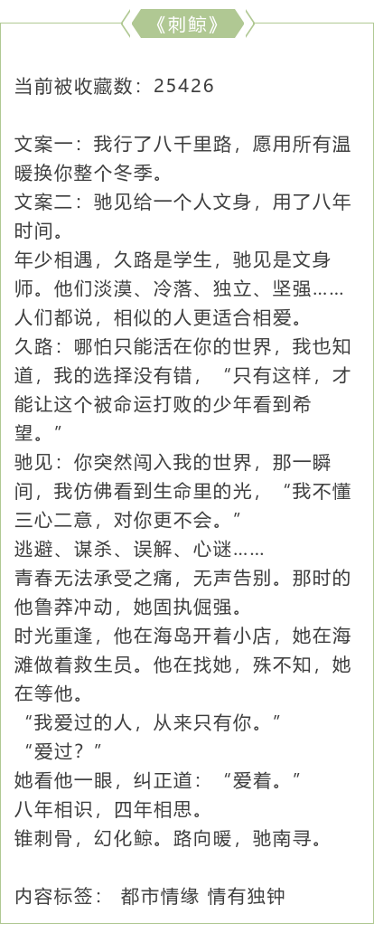 《0852》“强推”《烈途》“强推”《一千八百昼》“强推”《刺鲸》《寻爱游戏》《重生之我的男友变成了喵》
