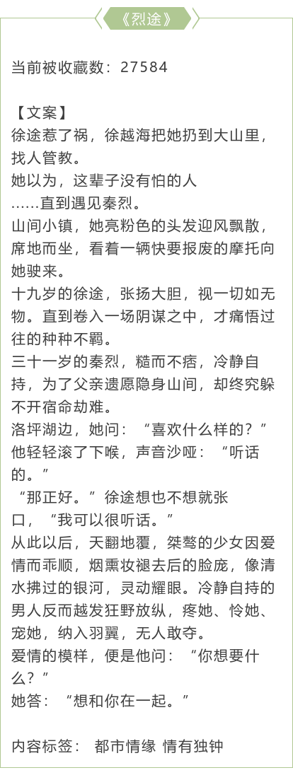 糙汉文,女非处。别后重逢。这是一段找寻与救赎,爱与怨交织的旅程。男女主偏糙,都很强,旅行文。