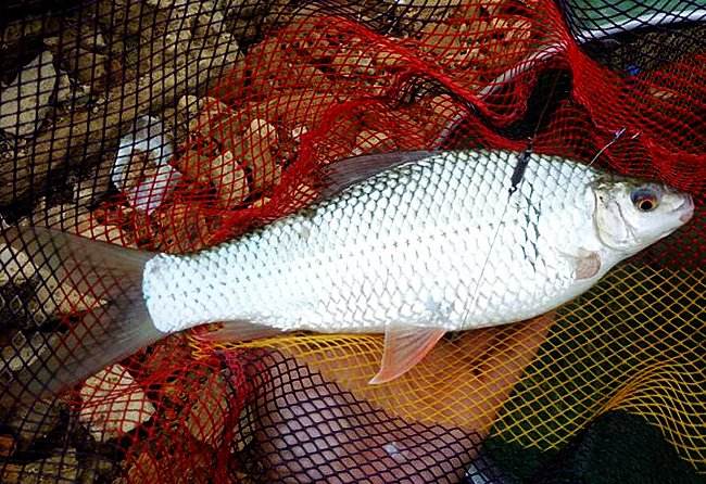 2、土鲮,这种鲮鱼的体型在三种鲮鱼中是最小的,不过土鲮是广东和广西的本地鱼种,通体呈雪白色,在鱼鳃后部有暗蓝色的鳞片。