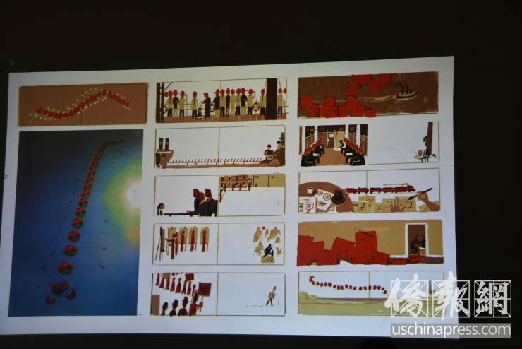 插画家萨萨基(Chris Sasaki)以画像真实呈现黄齐耀的一生。侨报记者李青蔚摄