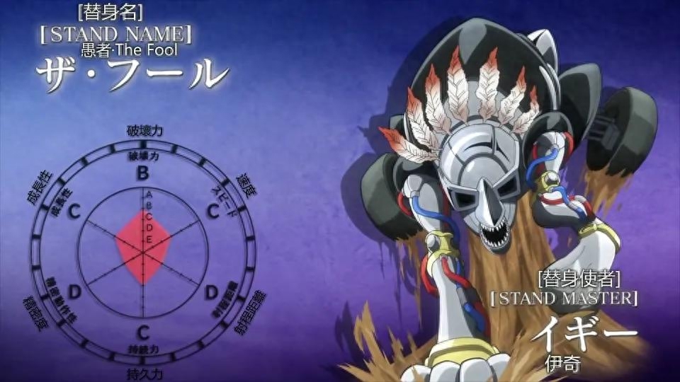人型替身,近距离力量型,具有超高精度动作,与一般替身相比有着压倒性的攻击力和速度。到第三部与DIO决战中觉醒“时间暂停”的能力从而能够在静止的时间中行动。
