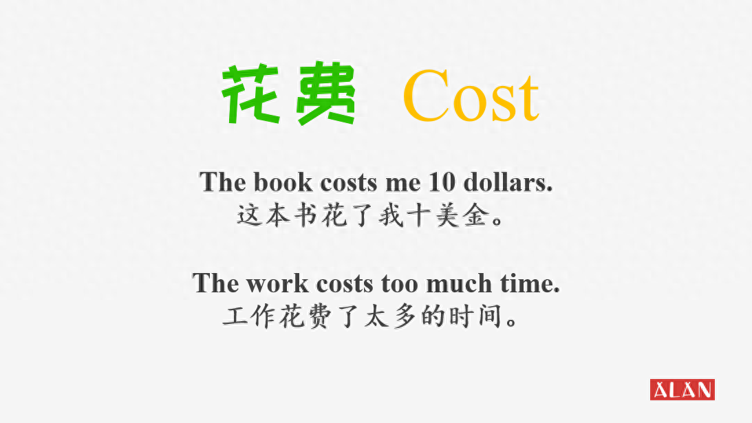 我们看到在第一个句子里,“这本书花了我十美金”,这句话中的主语是“the book”,一种物品,所以“花费”这个词就可以用cost。而第二个句子中,“工作花费了太多的时间”,很明显主语是工作,“the work”,表达的是一件事情,也需要我们用cost来表示“花费”。
