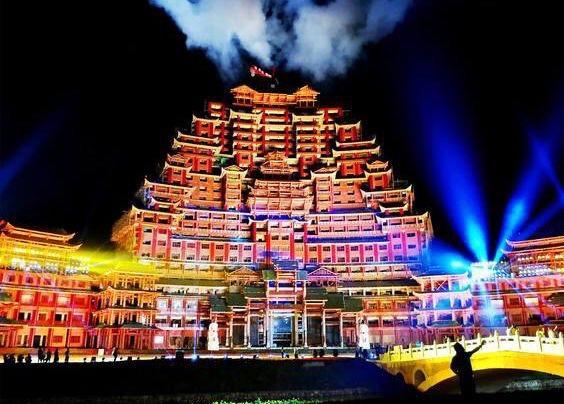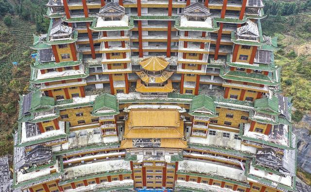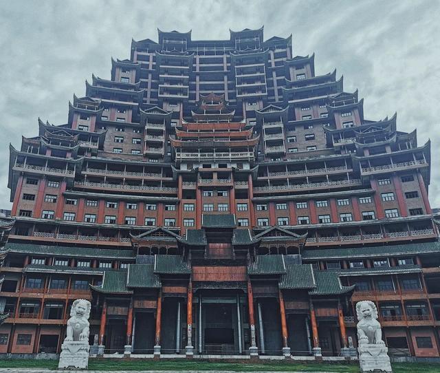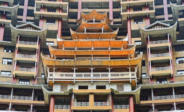 贵州水司楼,建造在独山县城外18公里的静净心谷景区内,这个水司楼占地面积5900平方米,总建筑面积60000平方米,高99.9米,进深240米,纯木机构打造,据说没有用一颗钉子,全部这算是结合了中国古代建筑艺术的一个奇迹,然而这个水司楼建成了、很不幸运的事情就是它还没有正式对游客开放就变成了烂尾楼,很是让游客遗憾。