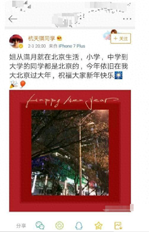 之后,杭天琪也在微博发文澄清表示,自己虽然是出生在上海,但是从小生长在北京,从没去过上海。