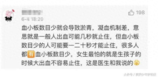 这不下面这位网友就给出了很专业的评价,其根本原因是血小板太少,凝血机制太差,留学不容易止住。