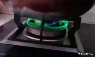 出现绿色火焰是因为灶具炉头被腐蚀后产生的碱式碳酸铜或不合格锅具在加热过程中析出的铁离子,在燃烧过程中会呈现绿色。