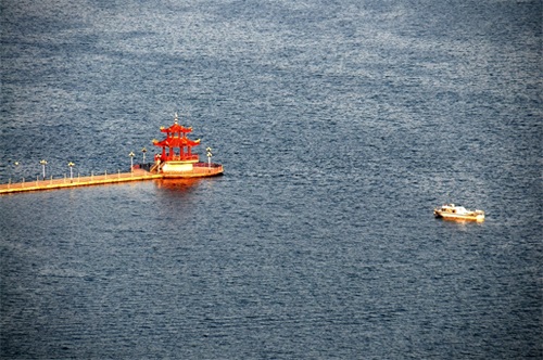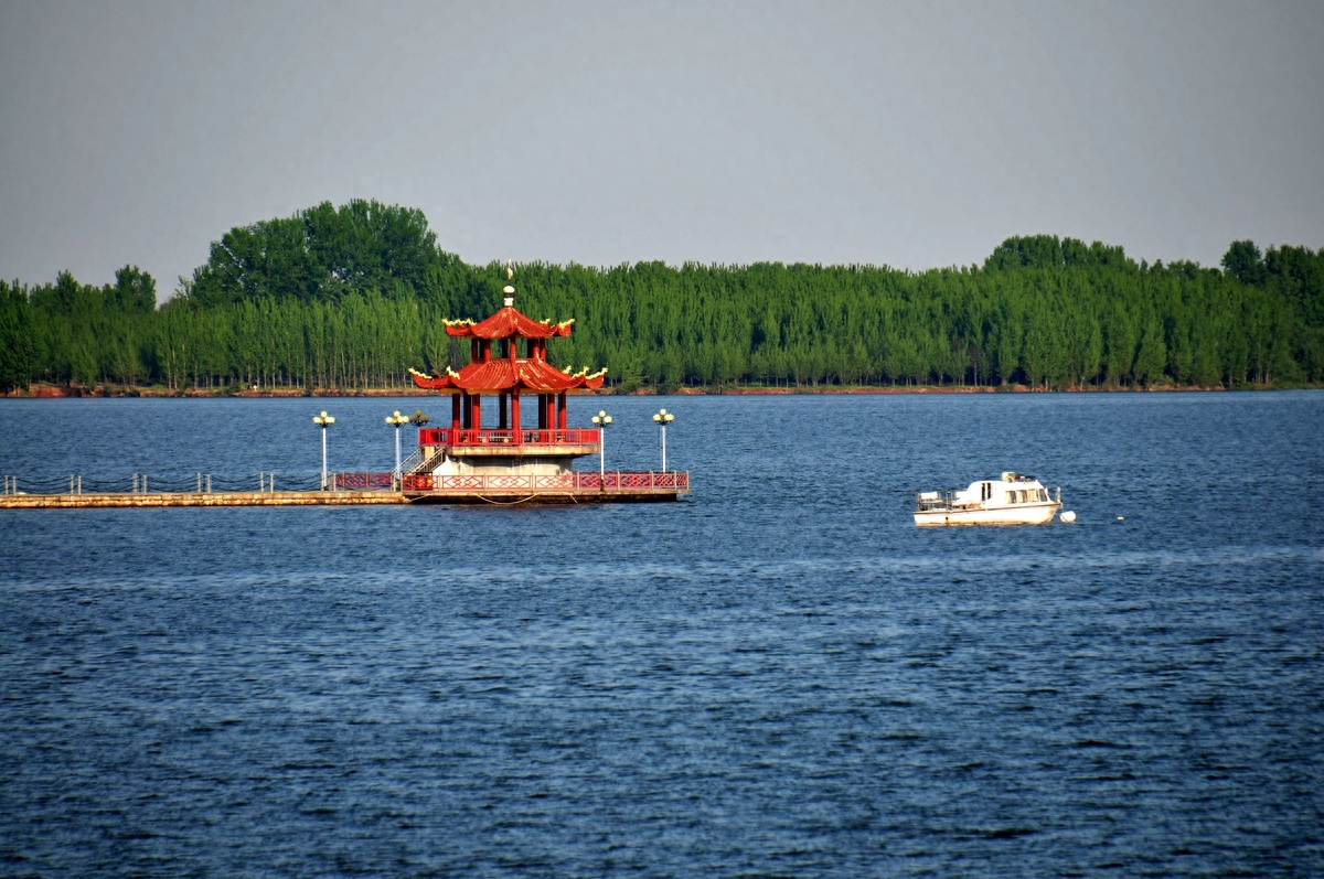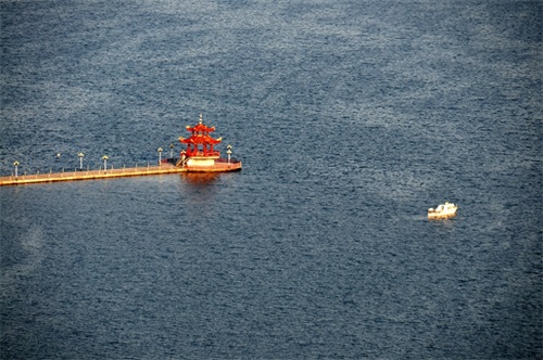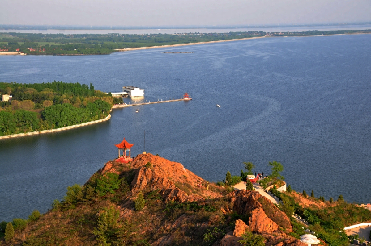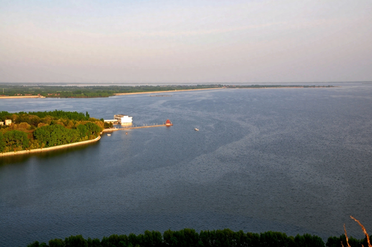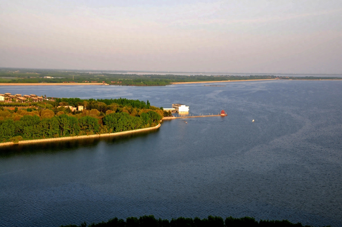 长焦镜头下的峡山水库标志性建筑--栈桥