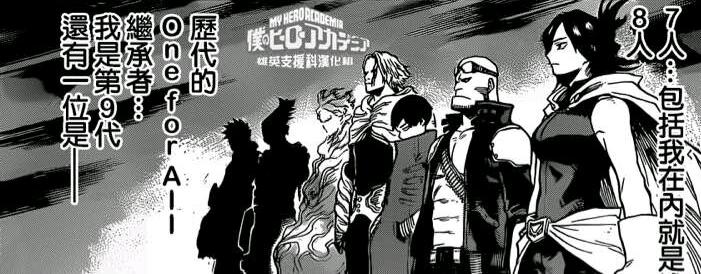 近期漫画公开的剧情非常有趣,作者列出了历代OFA的继承者,绿谷是第九代,而通过这些登场的历代前辈们,我们看的出来,第六位OFA的拥有者是一位光头,那么问题来了,我们都知道OFA的传承是需要DNA的,通常比较简单还有省事的方法就是吃头发,那么这位大叔到底给师祖奶奶吃了什么东西才成功传递了OFA呢?好吧我不敢想像了。