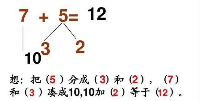 凑十法主要在于拆数,当两个一位数相加超过10时,我们一般使用凑十法