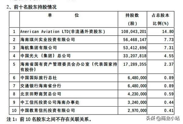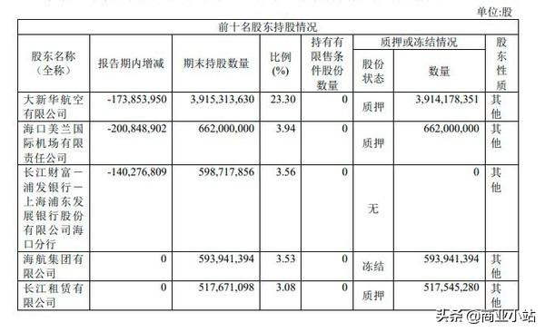两大股东(海南省发展控股集团与海航集团)的股权相差只有1%左右。