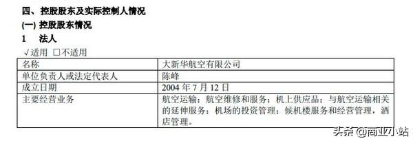 但控股股东大新华航空有限公司法人代表、董事长由陈峰担任。