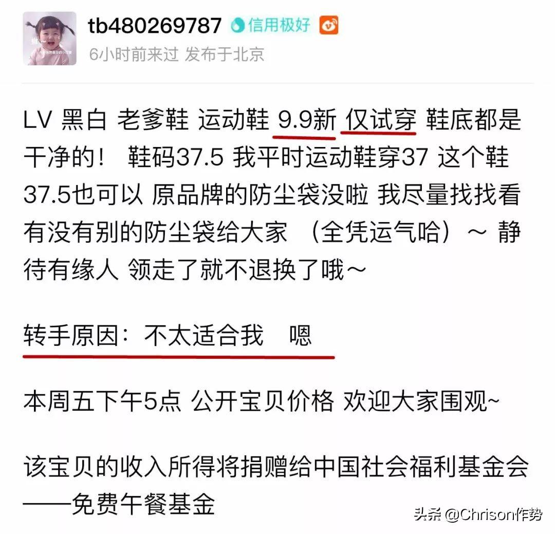 但大甜甜这波卖闲置的操作里,不乏一些有趣的亮点。比如这双即将在周五开卖的LV老爹鞋,她的转手原因赫然写着:不太适合我。
