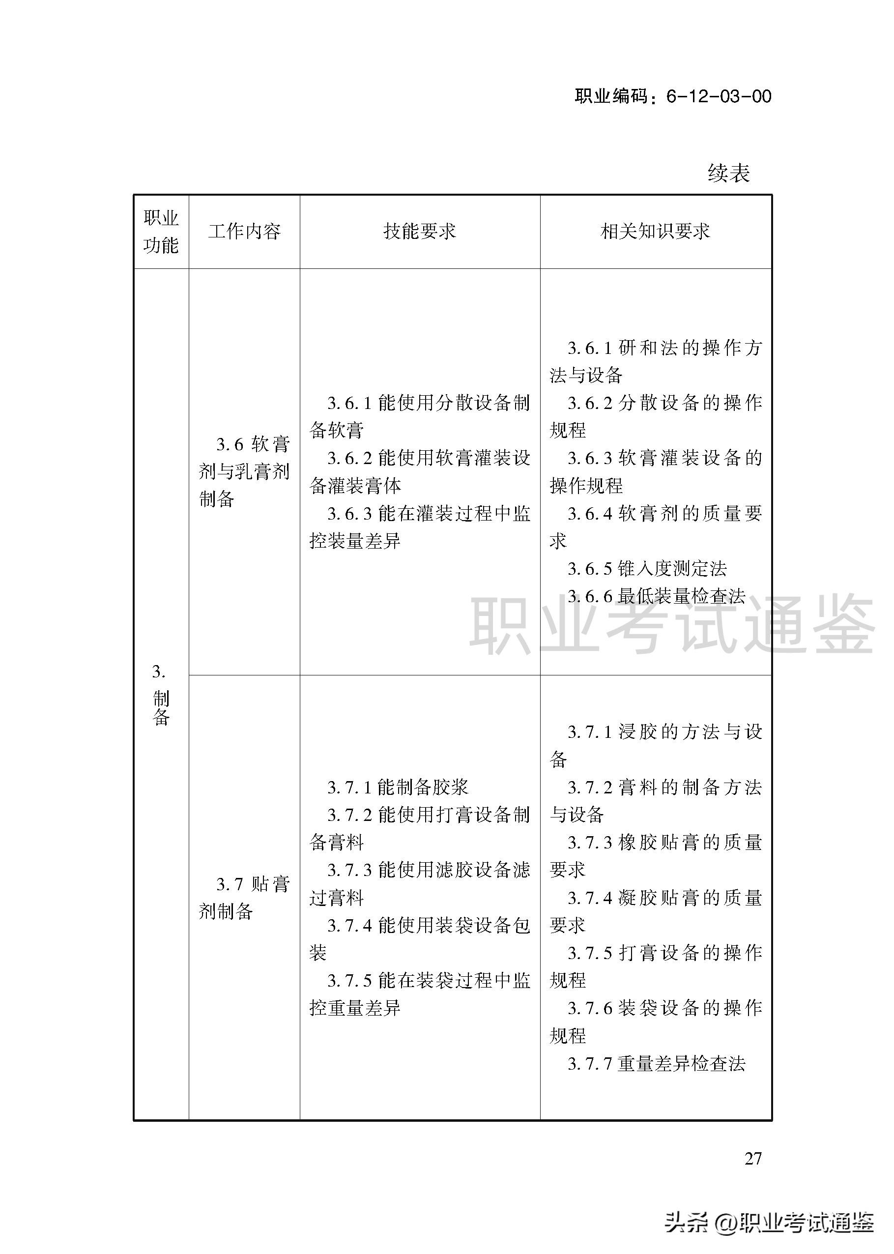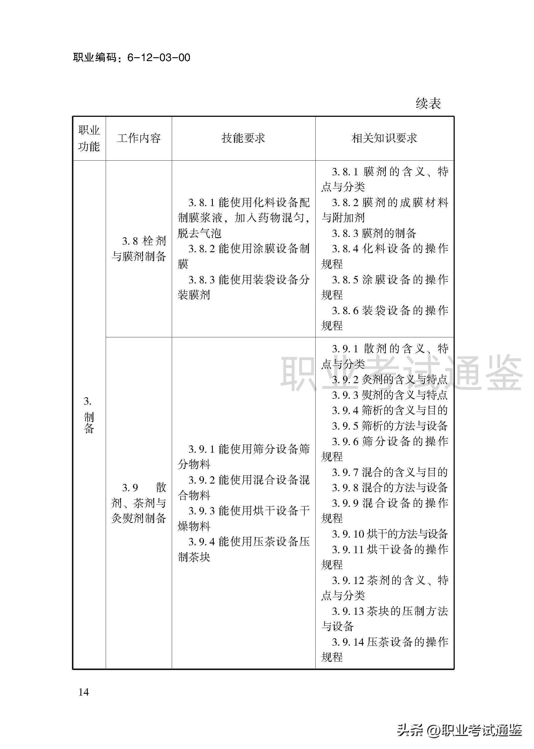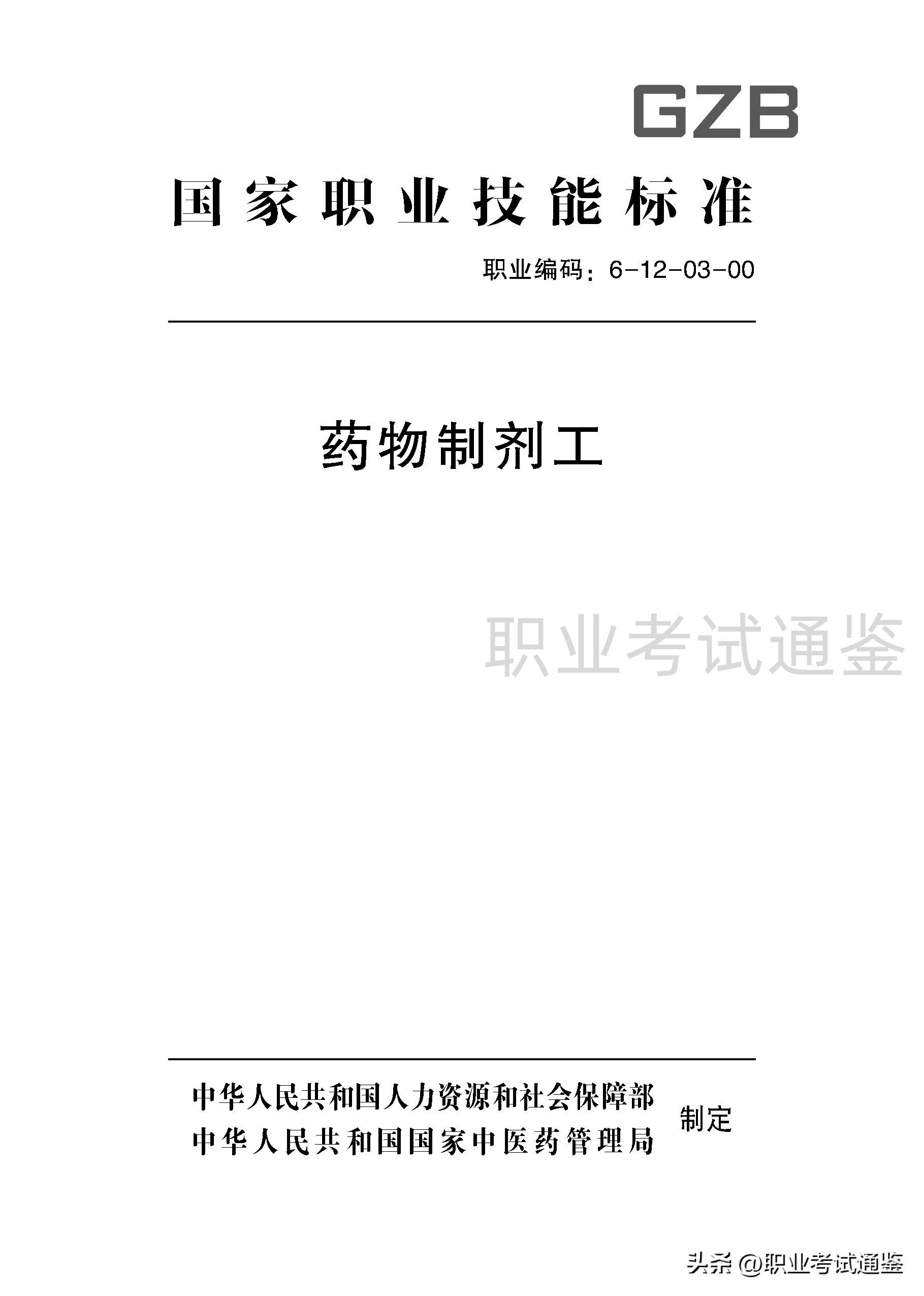国家职业技能标准-药物制剂工-2019年版,药物制剂工职业编码:6-12-03-00