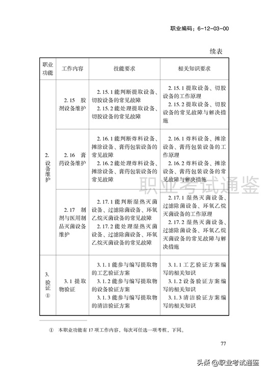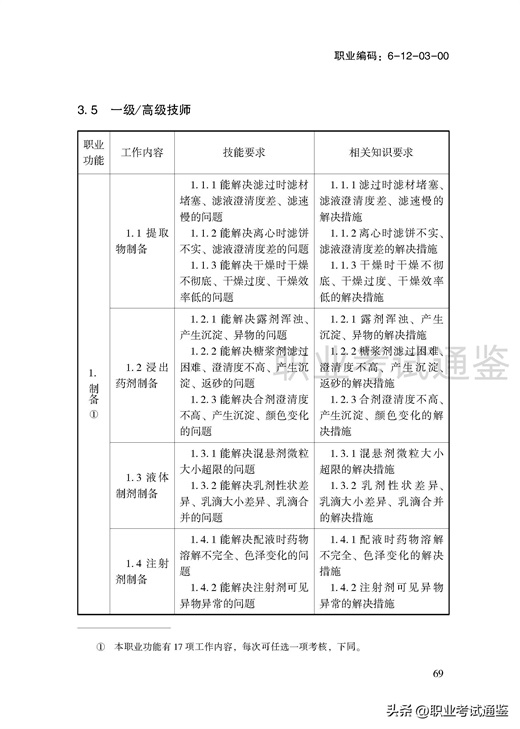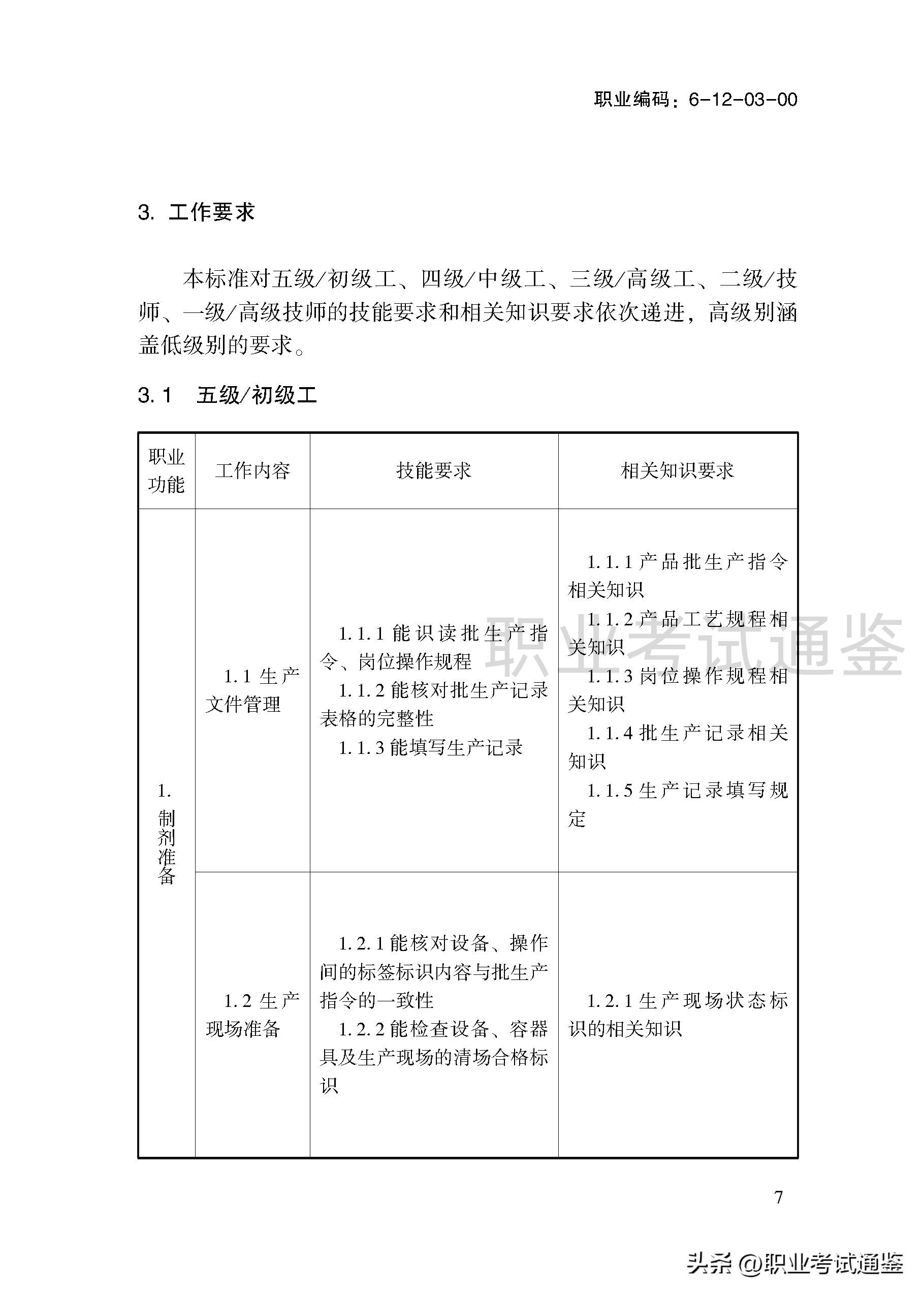 药物制剂工职业技能等级:本职业共设五个等级,分别为: 五级/ 初级工、 四级/ 中级工、三级/ 高级工、 二级/ 技师、 一级/ 高级技师。