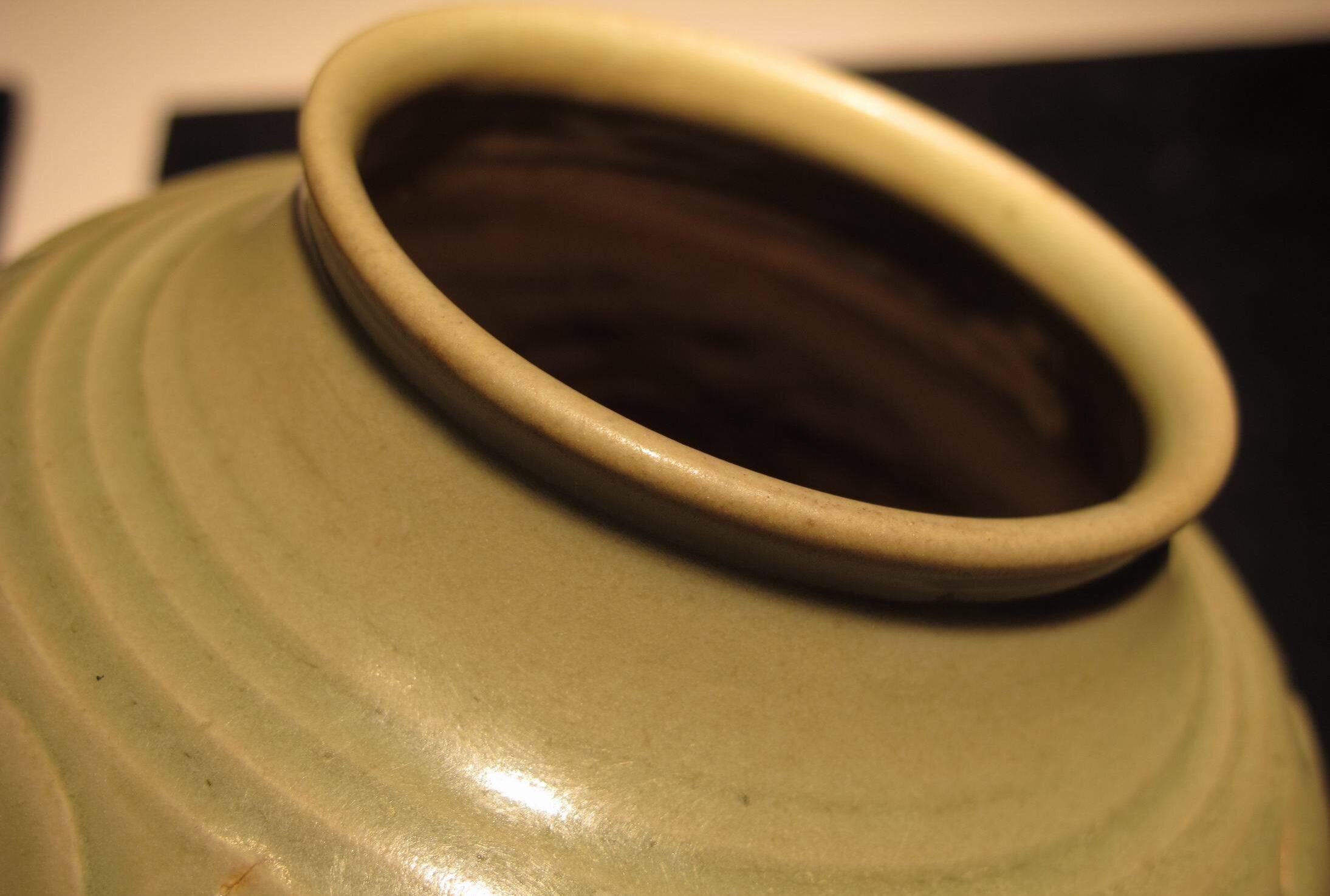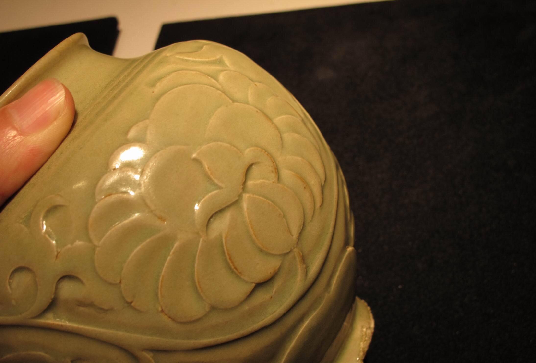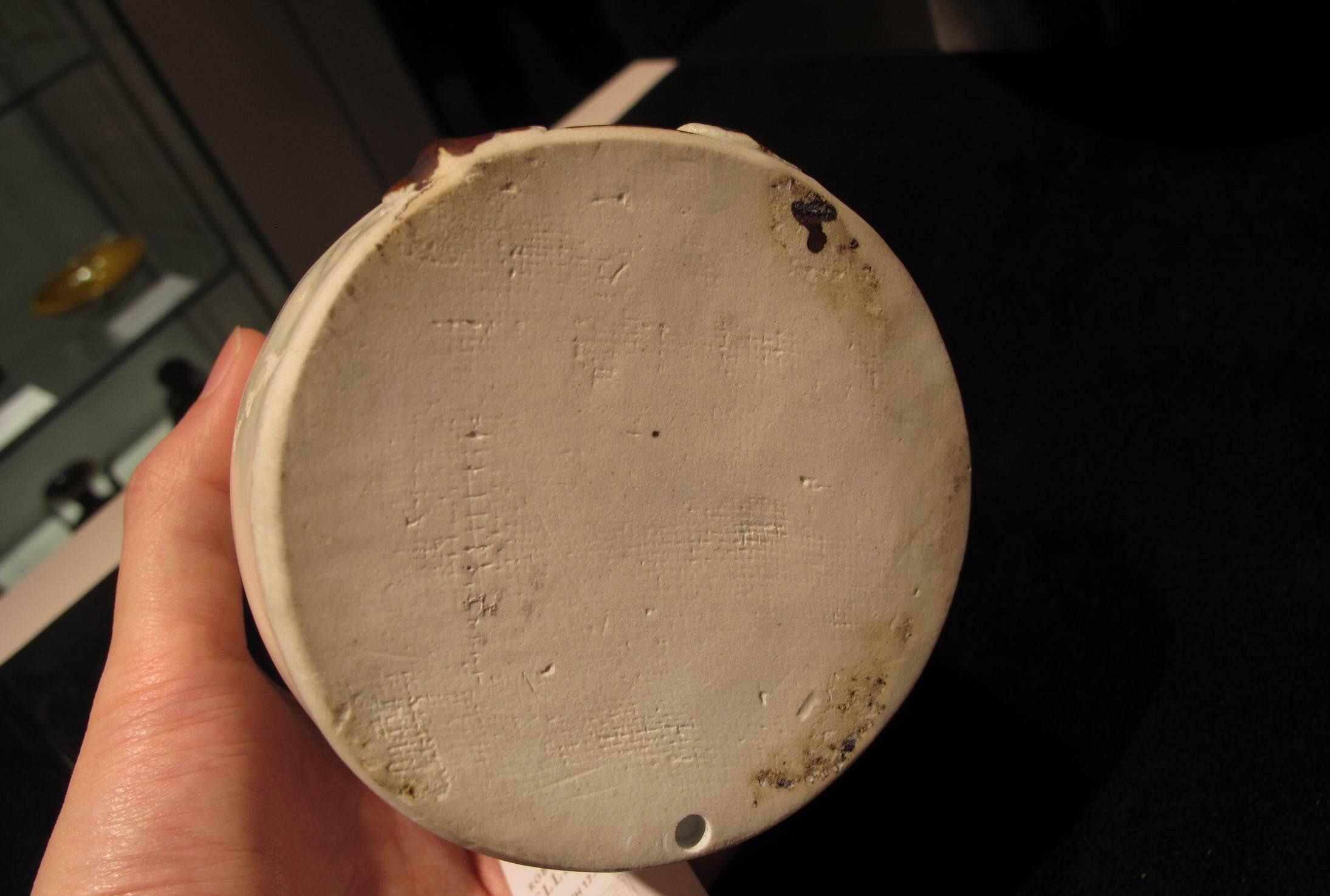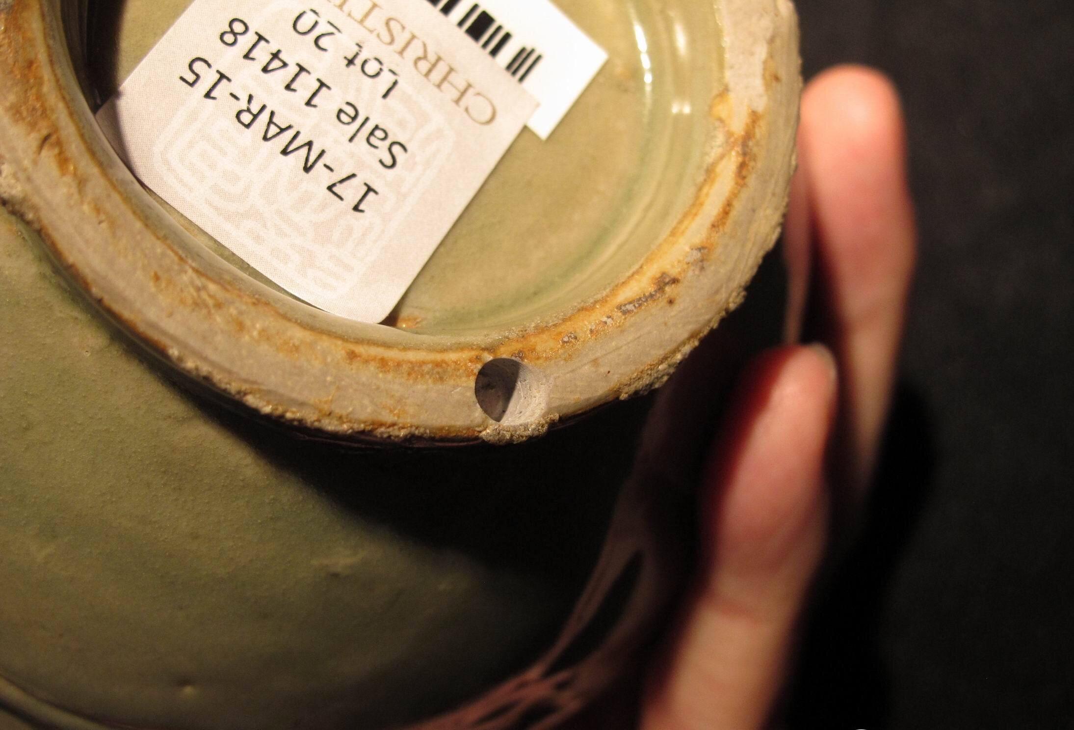预展现场上手看老窑瓷器,发现很多器物底部都有测定年代的印记,我想以安思远的性格,应该不会是他做的吧?不过买一个放心也好。这只耀州窑刻花纹罐,估价7-9万美元,是老窑瓷器中另一件值得关注的拍品。