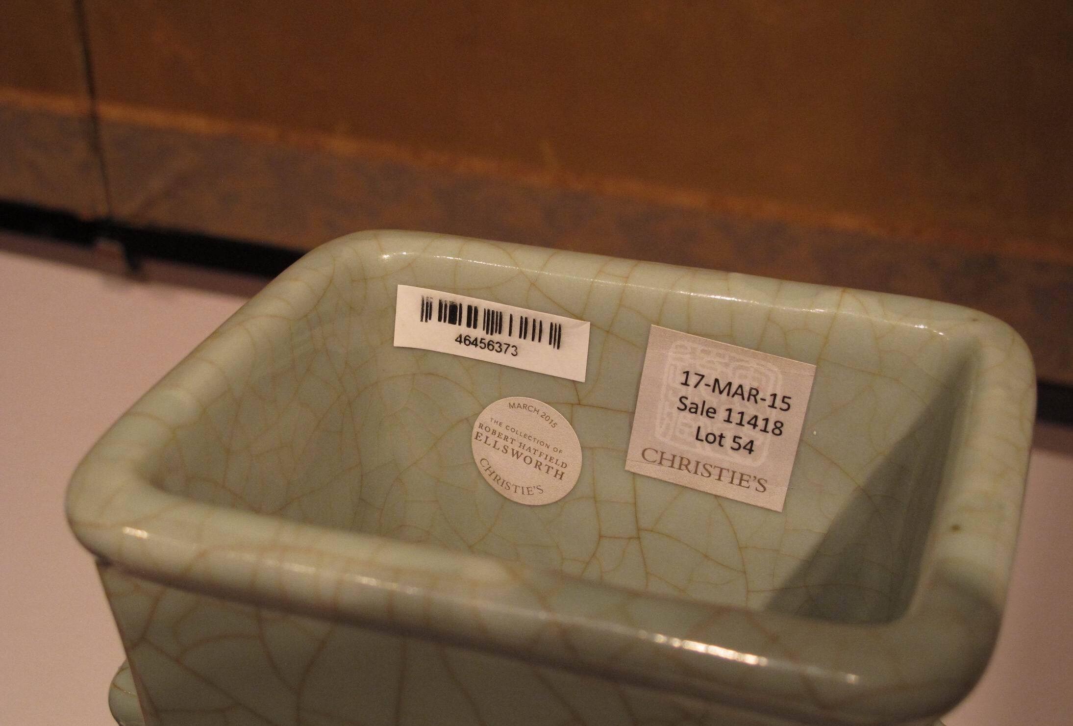 安思远专场各个门类的整体水平,佛像第一(主要包括泛亚洲的佛像),家具第二,瓷器第三,书画最末。而瓷器中,这两天被现场买家上手最多的应该就是这只四爷的四方瓶了(这场值得收藏家买的瓷器实在不多),雍正仿官,绝对能代表四爷的审美品位,品相完好加上安思远旧藏的附加值,佳士得给出的15-25万美元的估价是可以忽略不计的,个人预计,如果现场买气旺盛,这只瓶子可能会拍到80-100万美元落槌!