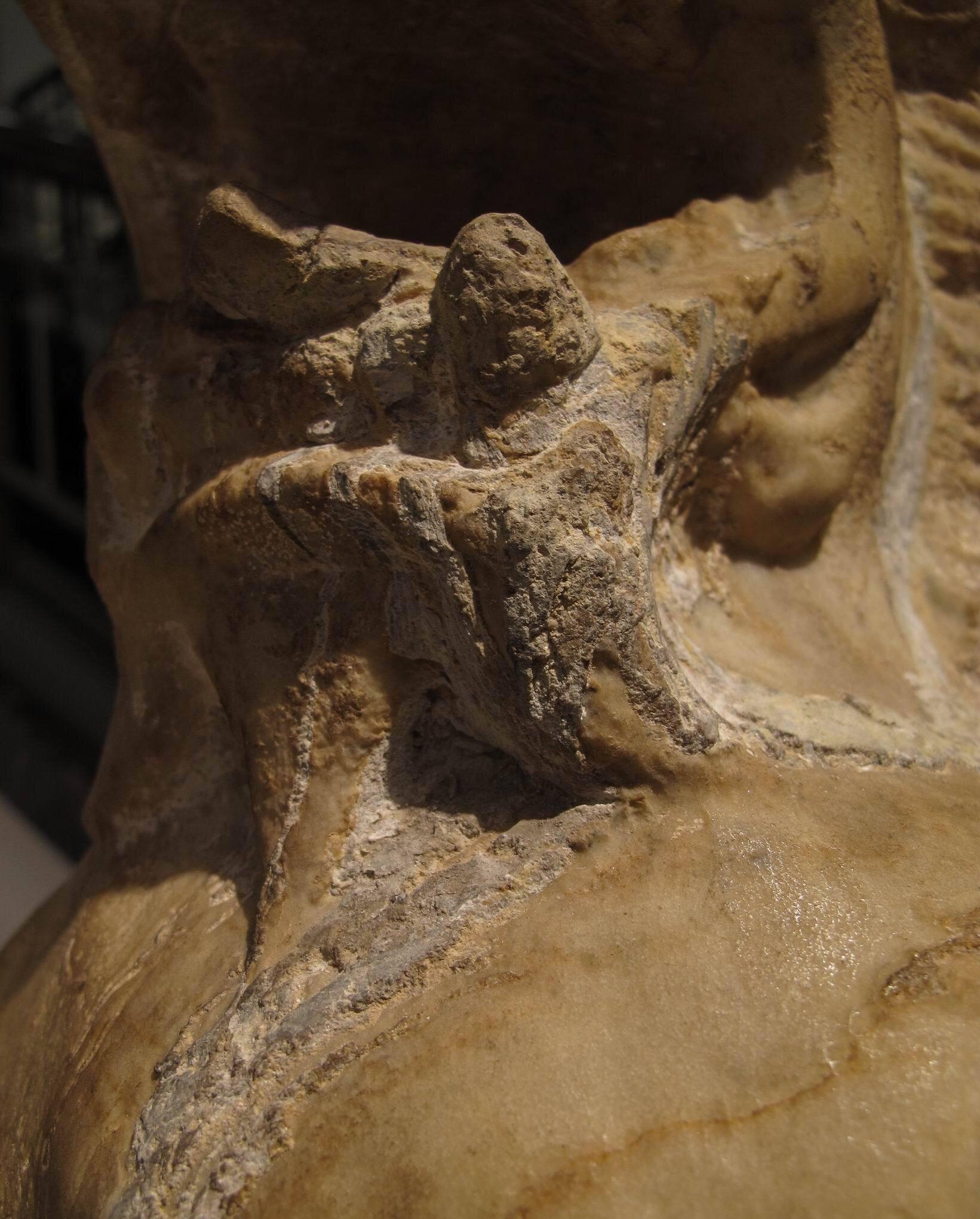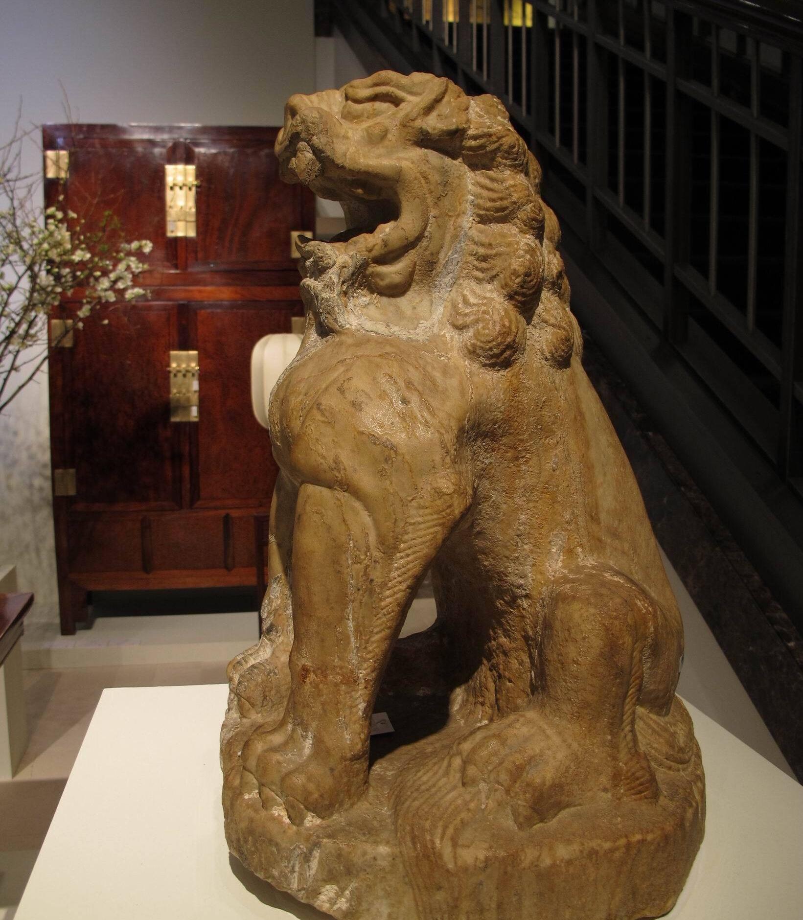这只唐代的石狮子,当时就摆放在通向大客厅的过道之上,相比较预展现场与之相对的意大利呆萌狮子(意大利狮子在安思远寓所是进门处看门的),我大唐狮子的造型显然拗得更有腔调了。不过唐代狮子修补的痕迹比较重(安思远的父亲是牙医,安思远并没有继承父业,但却时常用牙医工具来修补古董,呵呵),估价10-15万美元。