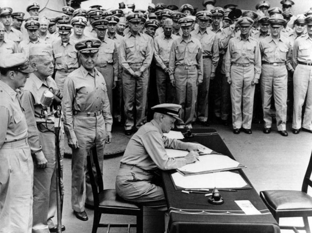1945年8月15日,日本宣布无条件投降。同年9月2日,日军的投降仪式在东京湾哈尔西的旗舰“密苏里”号举行,作为战胜国的代表,哈尔西也在现场见证了这历史性的一刻。1945年12月,为了表彰哈尔西在二战中的优异表现,美国政府授予他海军五星上将的荣誉。