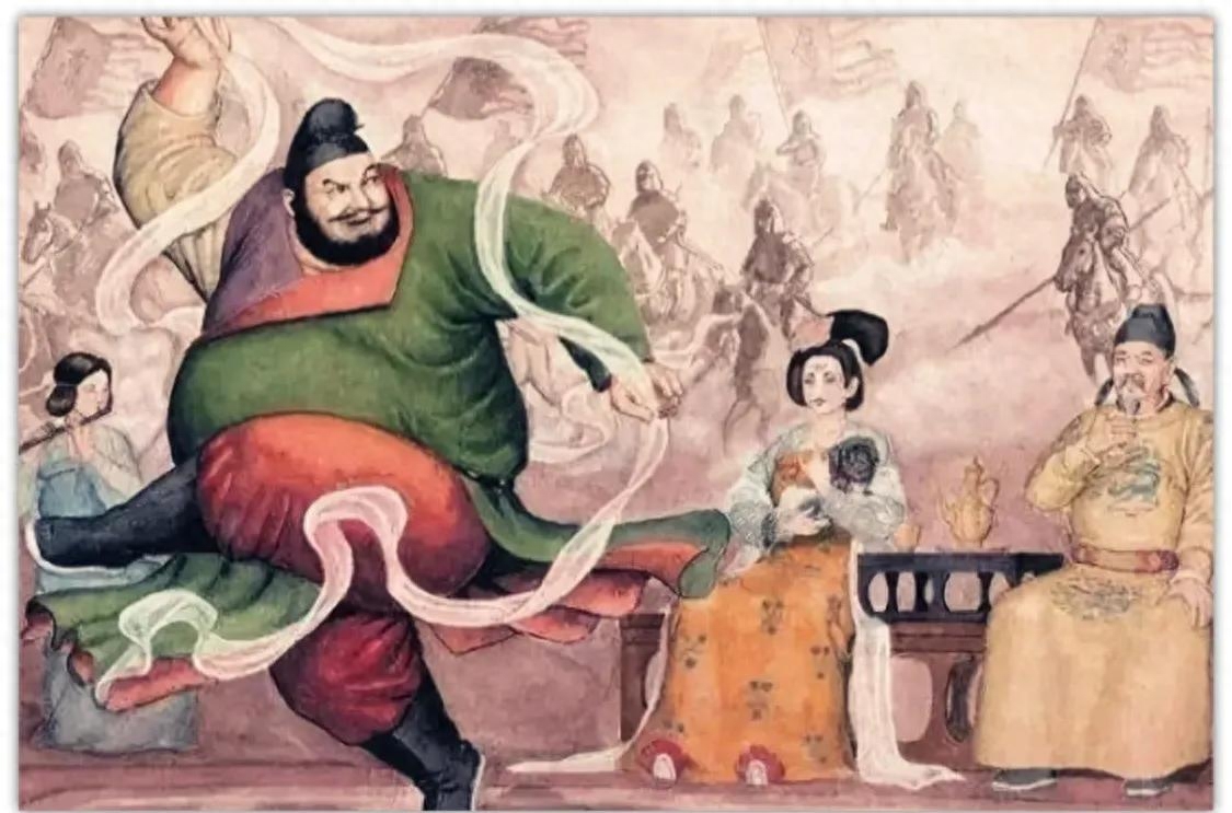 安禄山,粟特族,出身西域康国,骁勇善战,为人又极善钻营,因此平步青云。安禄山从巴结他义父张守辉,到巴结皇帝和贵妃娘娘,安禄山总是能让上司觉得自自己人畜无害,胖的可爱。跳了一首胡旋舞,又叫飞天舞,他这肥胖的身体还可以像陀螺一样去旋转,这让舞蹈家、音乐家李隆基两口子非常赏识他。死胖子甜言蜜语、古灵精怪,让杨贵虽认他做干儿子。